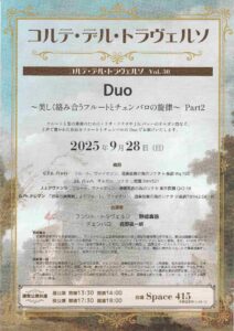 CDT Vol. 30 Duo 美しく絡み合うフルートとチェンバロの旋律 野崎真弥、西野晟一朗 – カレンダー カレンダーに追加 Timely カレンダーに追加 Google に追加 Outlook に追加 Apple カレンダーに追加 他のカレンダーに追加 XML ファイルとしてエクスポート 日時: 2025年9月28日 終日 2025-09-28T00:00:00+09:00 2025-09-29T00:00:00+09:00